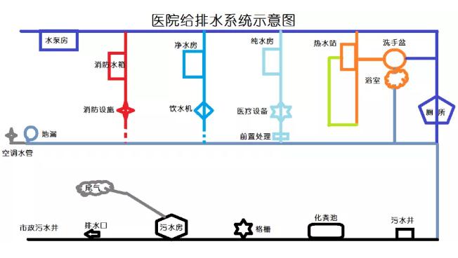 醫(yī)院給排水和污水處理運維各個重要節(jié)點如下圖,以下將對各環(huán)節(jié)的運維要點進行介紹。